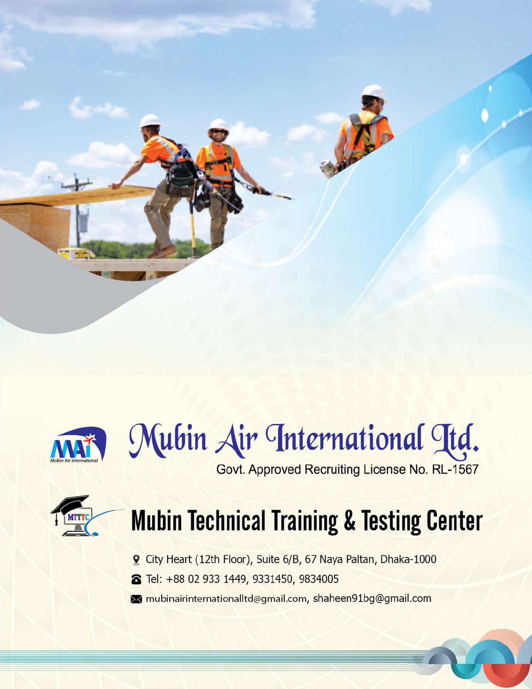 Mubin Air International Limited is a Recruiting Agency and Overseas Placement Company of Bangladesh. It was established at Dhaka in the year 2018 with the objectives of catering to the crying needs to infuse ethical business practices, dynamism, and vigor into the overseas employment endeavors of Bangladesh.
